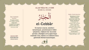 El Cebbar, insanların en zor zamanlarında ihtiyaçlarına karşılık veren, kalplerini onaran ve her türlü dertten kurtaran eşsiz bir isimdir.Bu ismin içindeki derin anlam, Allah'a sığınmayı ve ona dua etmeyi teşvik eder.